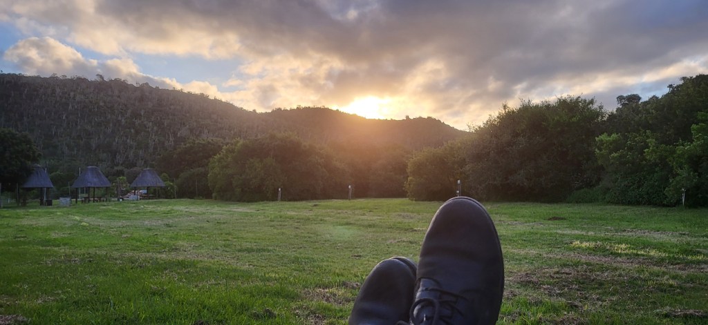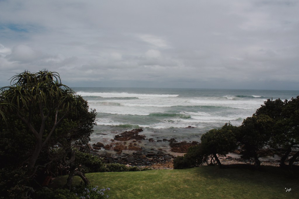 Auch heute geht’s bereits weiter. Der nächste Zwischenstep soll Coffee Bay sein. Für die ca. 380 km brauchen wir 5-6 h Fahrzeit. Die Strecke enttäuscht landschaftlich gegenüber den letzten Tagen. Die Gegend ist geprägt von Farmland. Begeistert dagegen sind wir von der Küste. Wild Coast – wie ich sie erhofft hatte. Lunch am Meer. In tollem Ambiente. Die Campsite haben wir mal wieder für uns allein. Naja fast- zwei Hunde haben sich uns angeschlossen. Die Lage der Campsite ist unbeschreiblich schön. Es fühlt sich an, als würde der Platz in einem botanischen Garten liegen – magisch. Das Meer ist die ganze Zeit entweder sichtbar oder hörbar. Ein Traum! Die Frage ist, bleiben wir? Nein. Das Land ist so wunderschön. Wir sollten und wollen weiter. Leider regnet es auch abends etwas. Gut, dass wir unsere Trap dabei haben (aus Deutschland mitgebracht) um den Regen der diesmal eher seitlich entgegenweht abzufangen. So schnell wie das kleine Gewitter kam, ging es auch wieder. Aber irgendwie ist der Abschied von einem so tollen Ort und den herzlichen Menschen jedes Mal ein bisschen schwer.